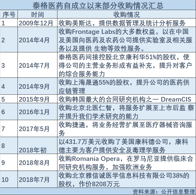 但值得注意的是,泰格醫藥過去不斷“買買買”并購公司,也是其業績維持高速的原因。