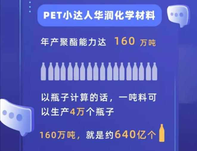 年產160萬噸聚酯瓶片產能是什么概念?據華潤公眾號解釋,以瓶子計算的話,一噸料可以生產4萬個瓶子,160噸料可生產約640億個瓶子。“香飄飄奶茶,一年賣出三億多杯,杯子連起來可繞地球一圈。”這句廣告詞大家都聽過,640億個瓶子可以繞地球多少圈?