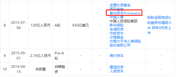 根據(jù)當時公開資料顯示,2015年春華資本在螞蟻估值450億美元時參與了A輪融資。