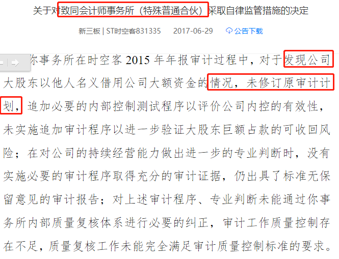 股轉系統還對東興證券、致同會計師事務所采取了出具警示函的自律監管措施。