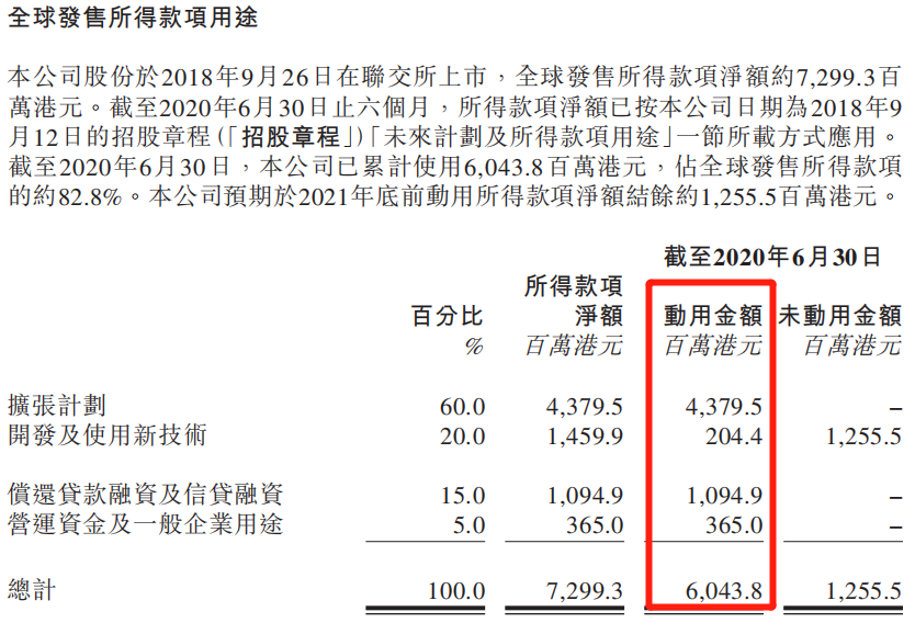 查閱海底撈中報(bào)發(fā)現(xiàn),截至6月底,海底撈已累計(jì)使用IPO募集資金約60.44億港元,占比約82.8%,剩余12.56億港元預(yù)計(jì)于2021年底前動(dòng)用。
