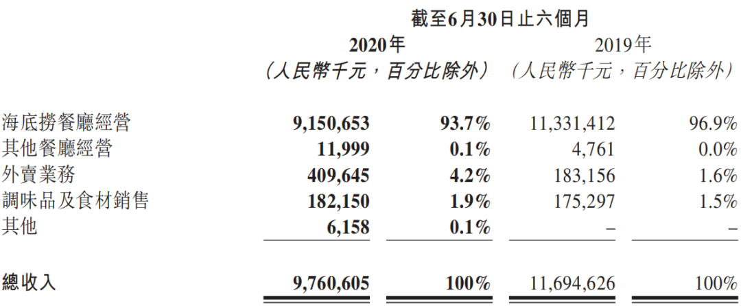 進(jìn)一步來看,上半年海底撈的餐廳收入為91.51億元、外賣業(yè)務(wù)收入4.1億元、調(diào)味品及食材銷售1.82億元。其中餐廳收入同比減少19.2%,后兩大業(yè)務(wù)分別同比增長123.7%和3.9%。