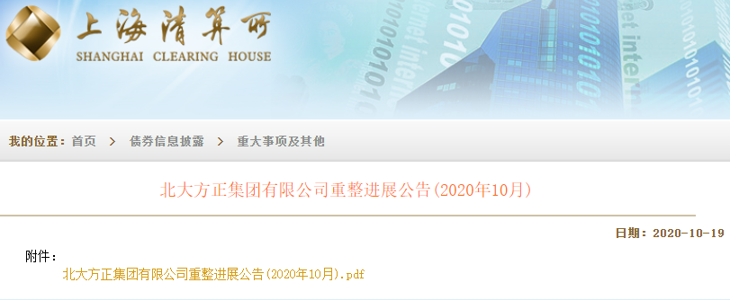 隨著債權(quán)申報(bào)工作有序推進(jìn),10月19日,北大方正管理人在上清所網(wǎng)站披露了北大方正重整進(jìn)展公告。